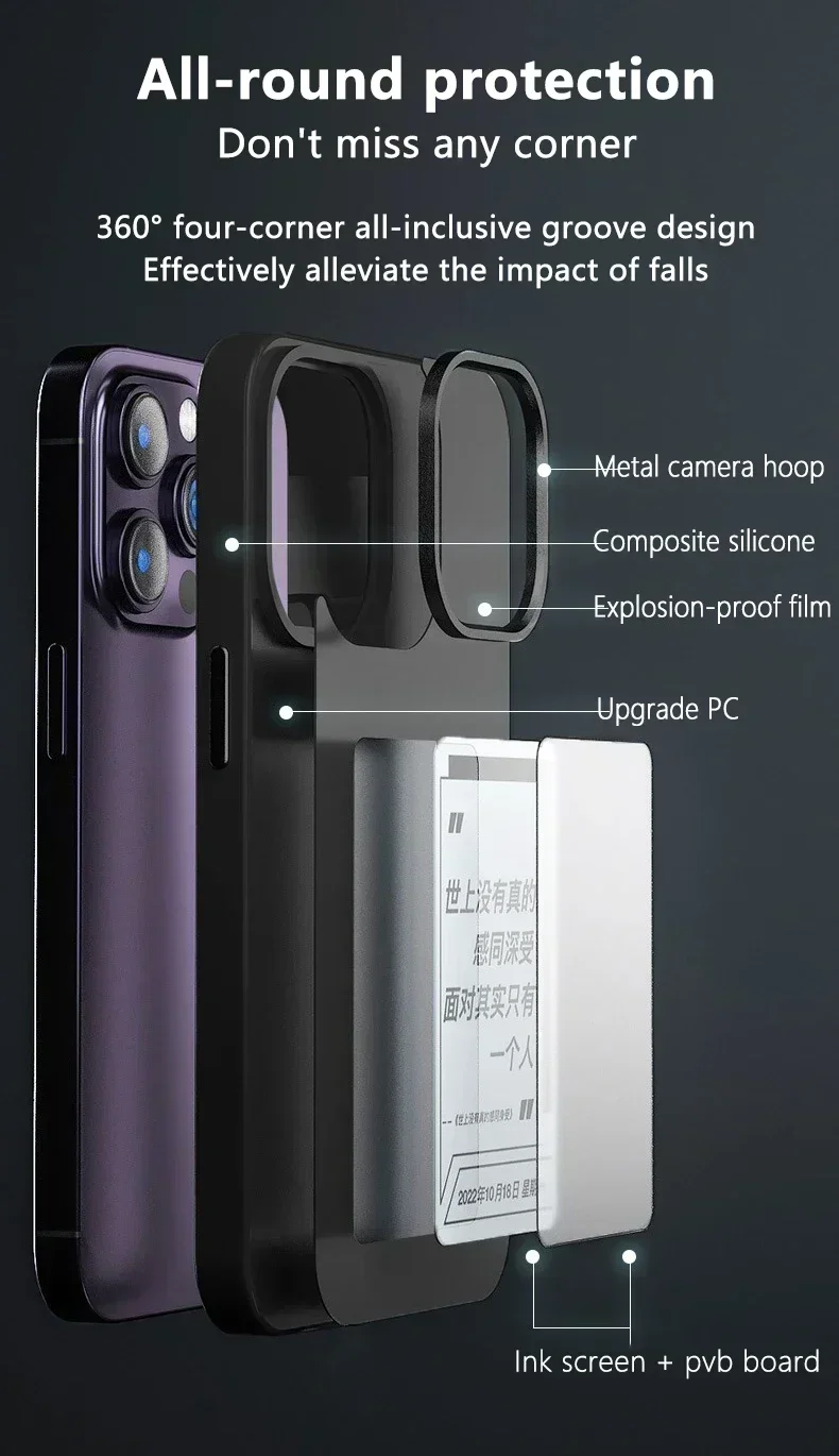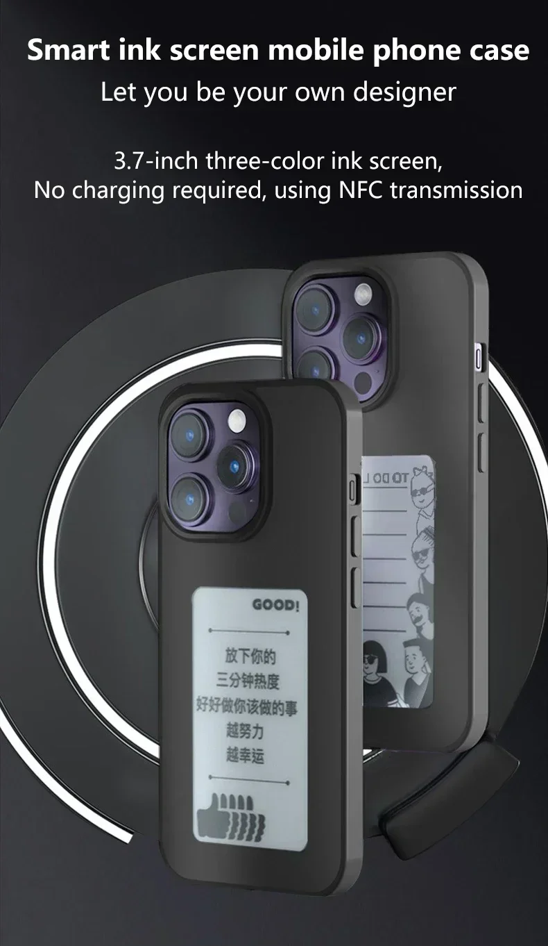 Screen Smart NFC Phone Case for Iphone 15 14 13 Pro Max DIY E ink Back Display Protection Case Battery Free