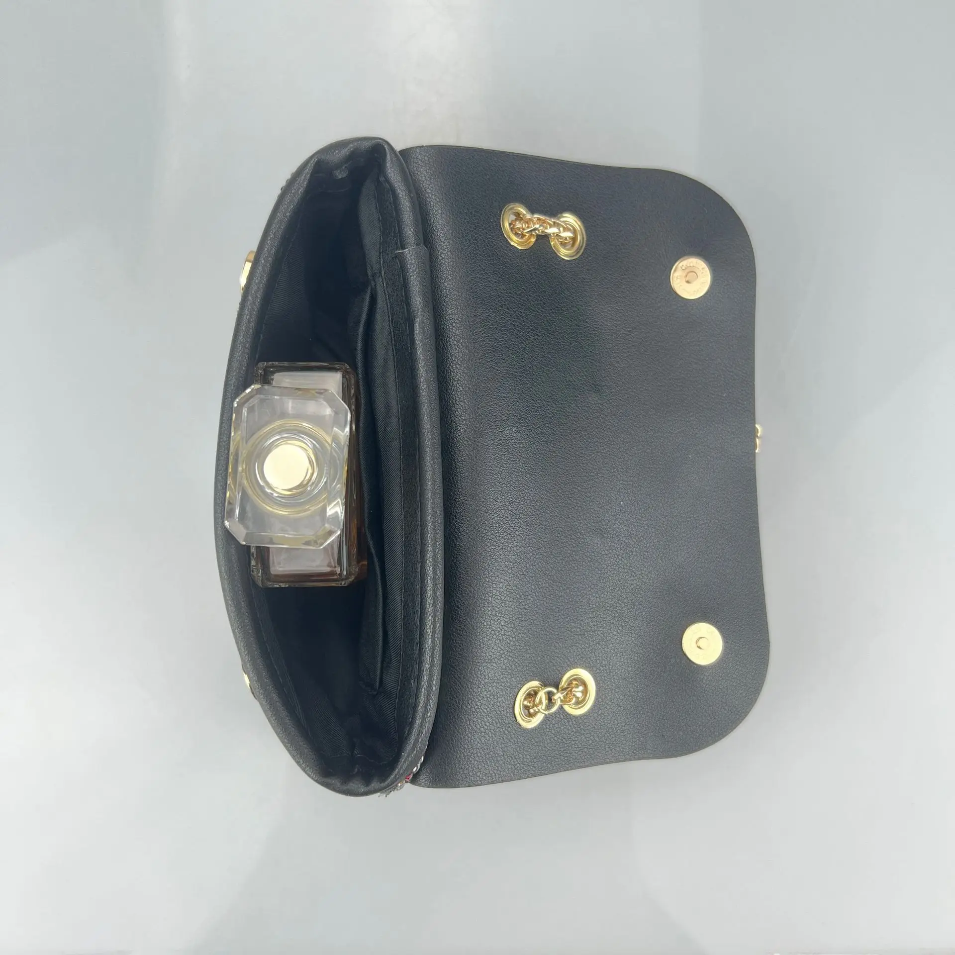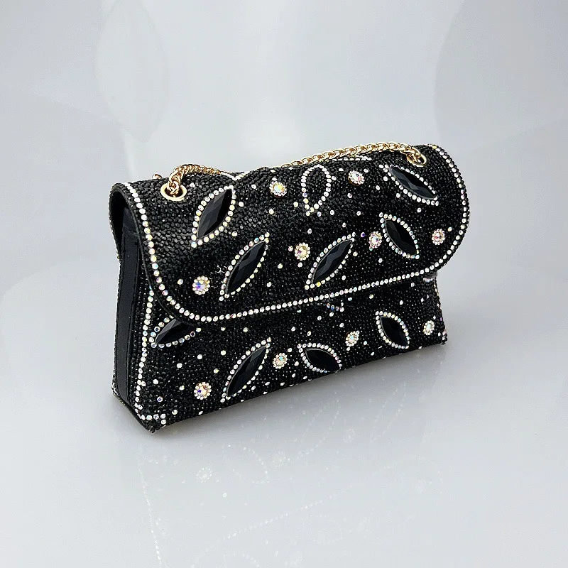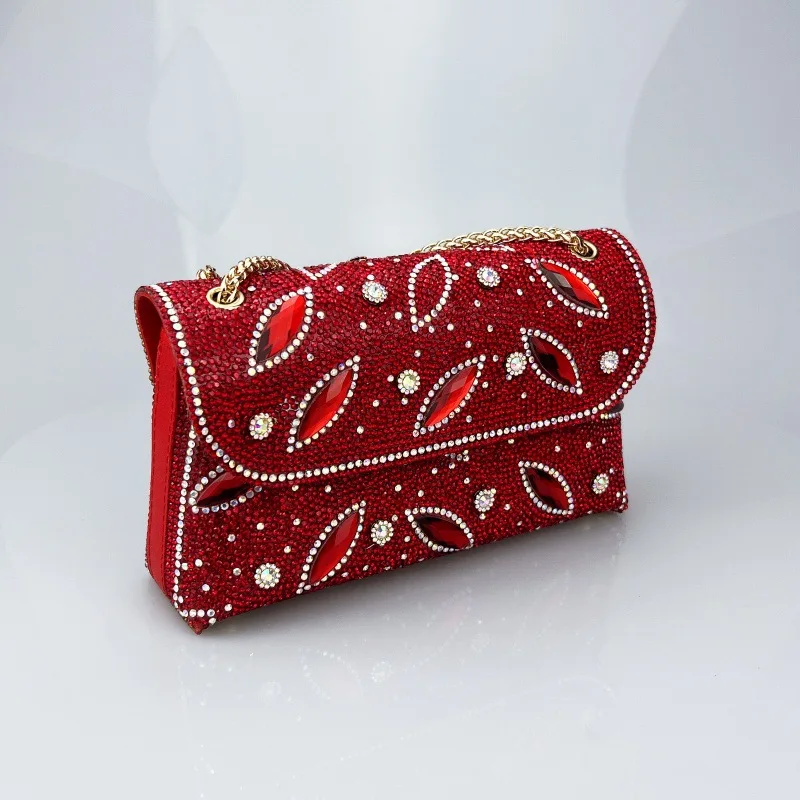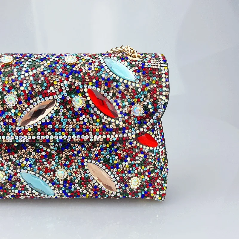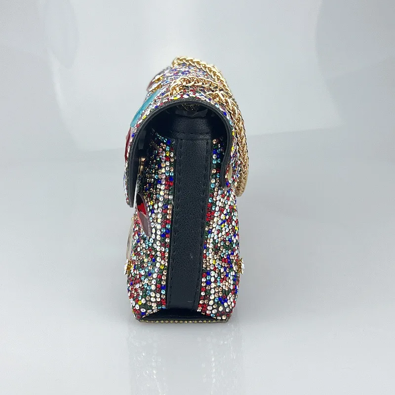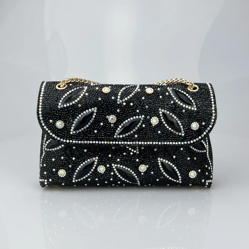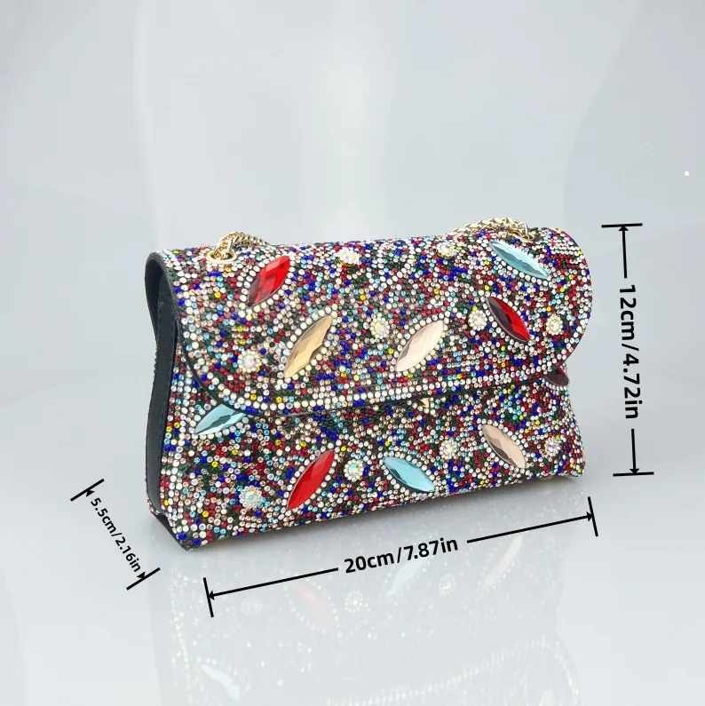 Tendencia Chain Bag with Diamonds for Women Branded Handbags for Women Zipper Pu Polyester Bags with Full Stone for Women