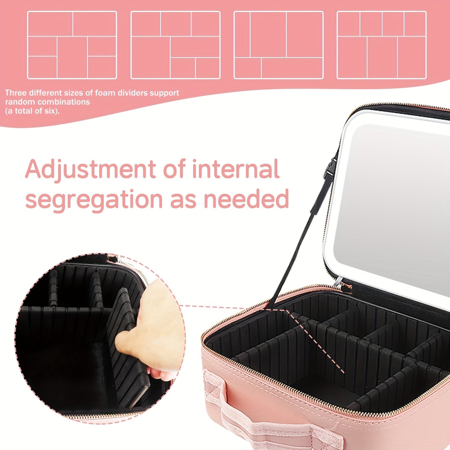 LED Light Travel Cosmetic Bag with Mirror Large Capacity Skin Care Storage Bag