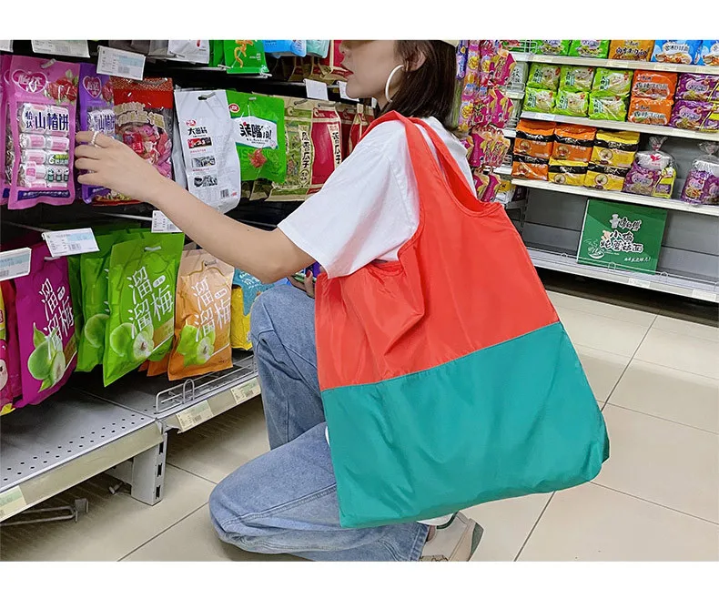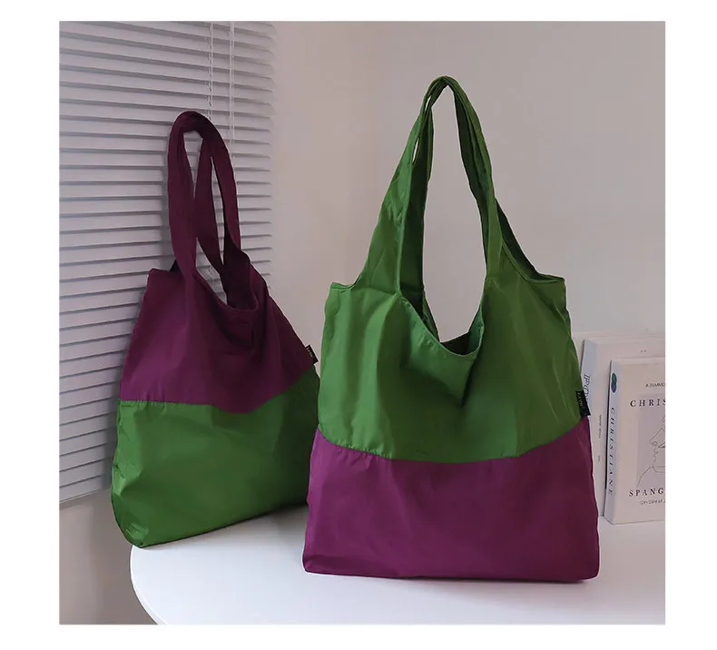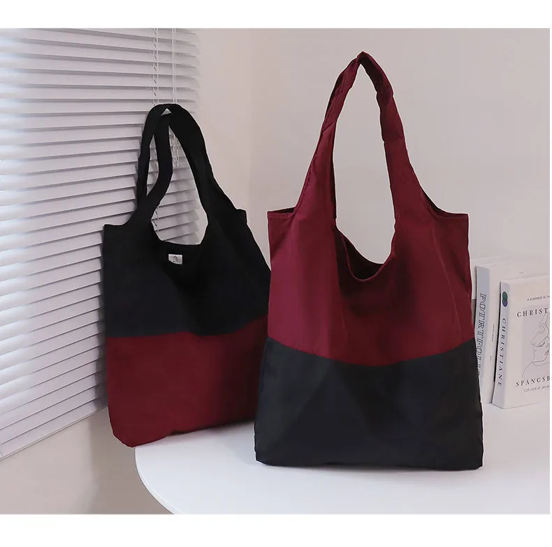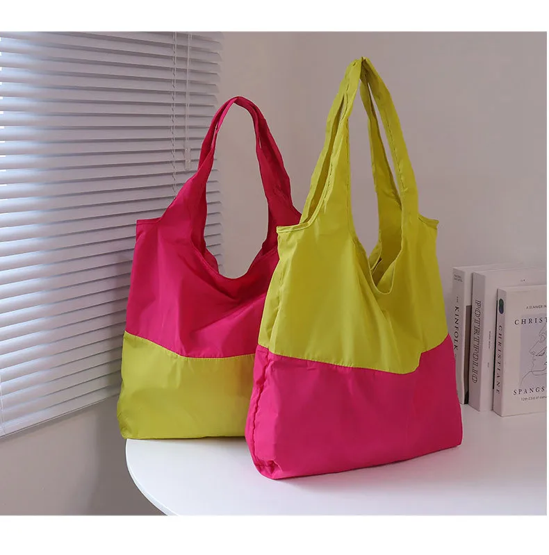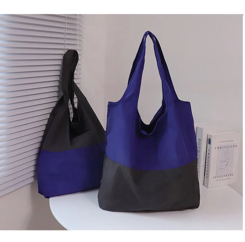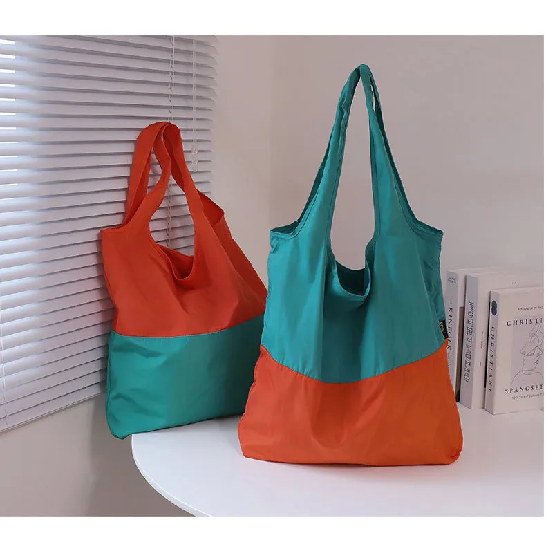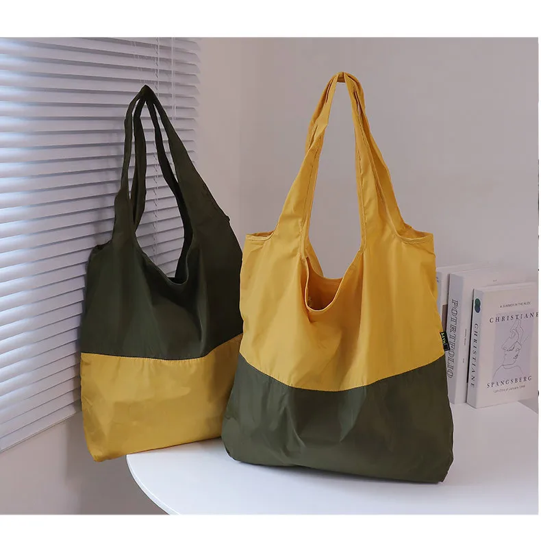 Two-Color Splicing Letter Large Capacity Portable Polyester Folding Satchel Waterproof Shoulder Bag Environmentally Friendly