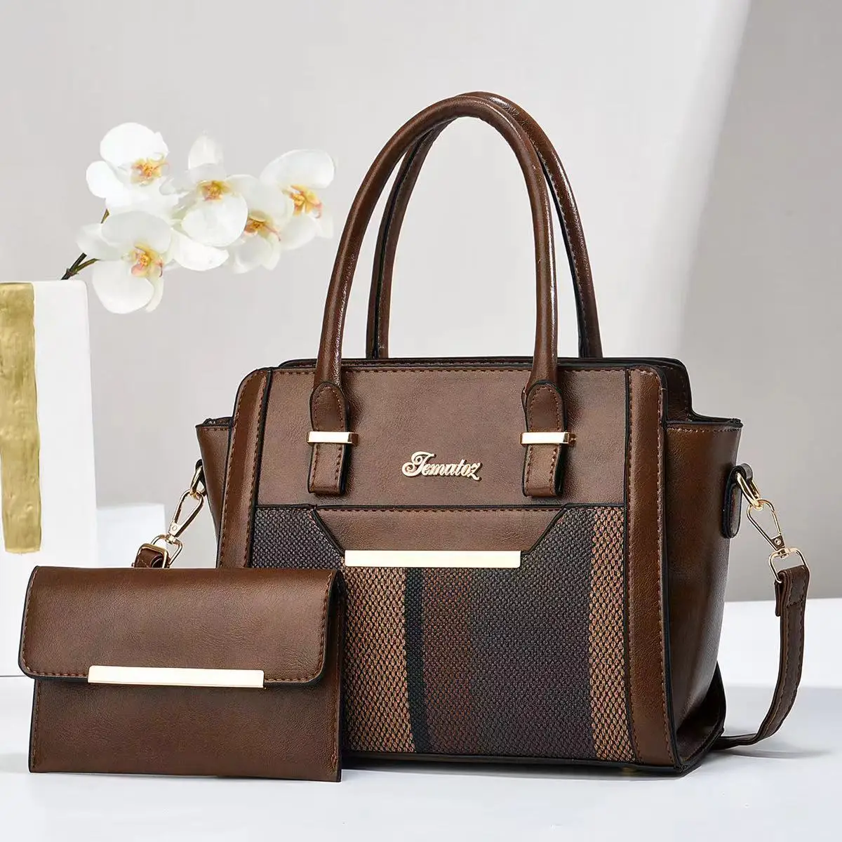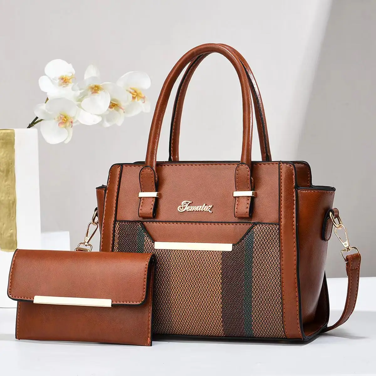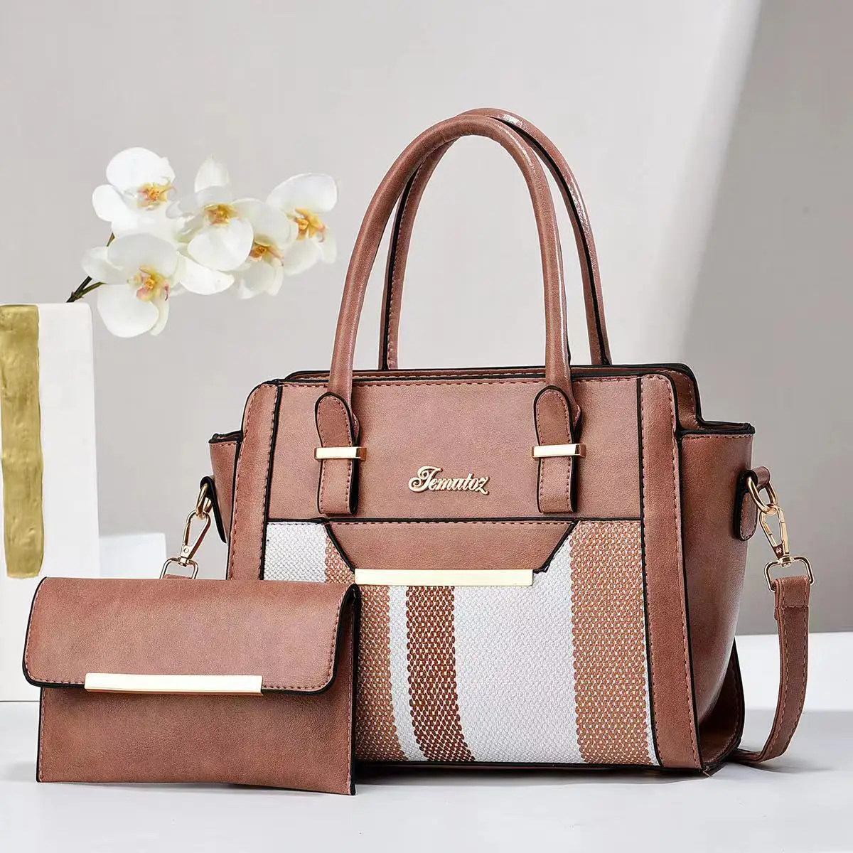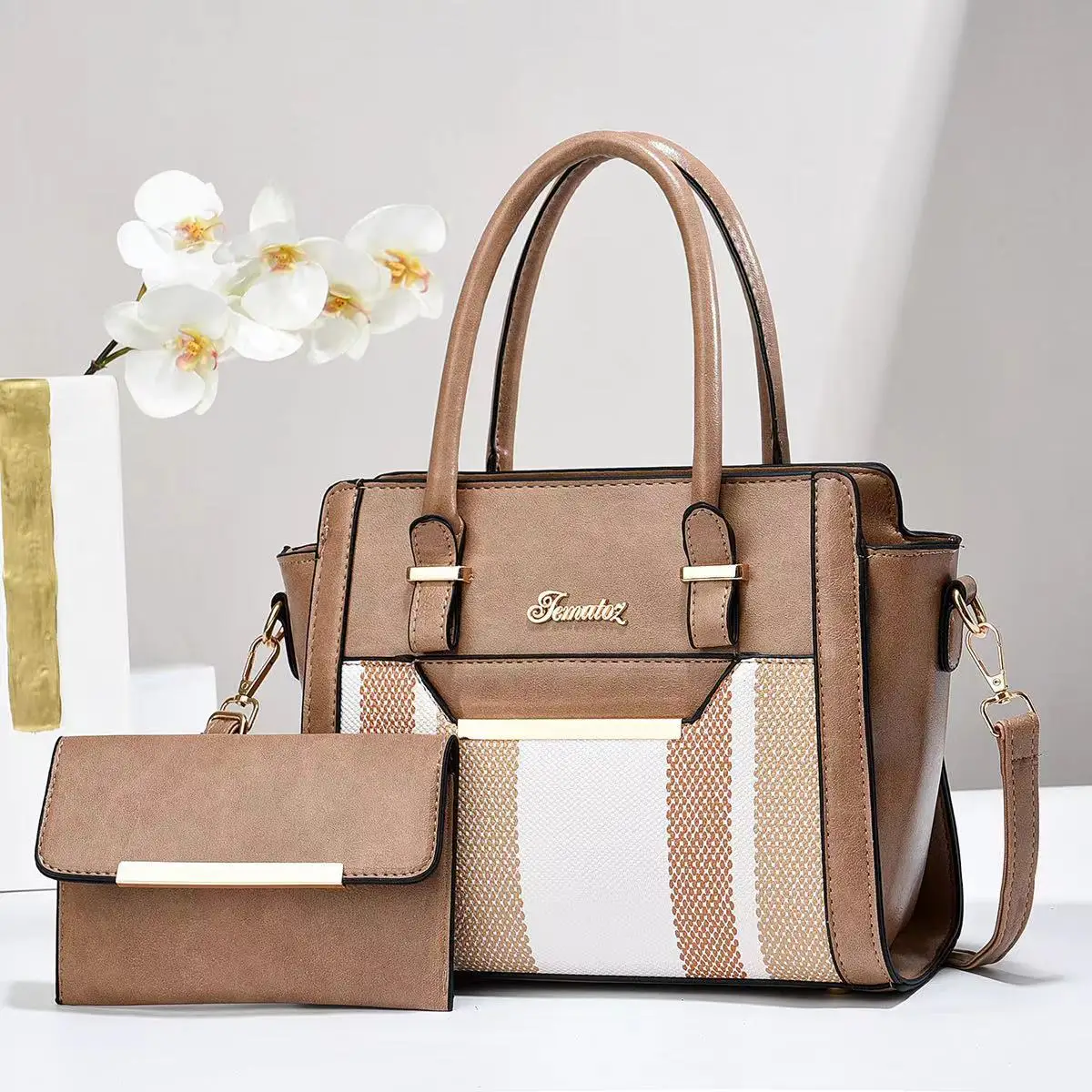 Wholesale 2025 New Large-Capacity Splicing 2-Piece Bags Fashion Pu Womens Designer Handbags Famous Multi-Compartment Tote Bag