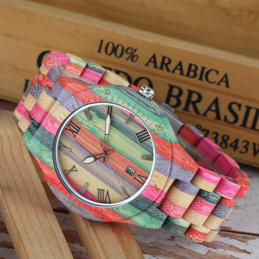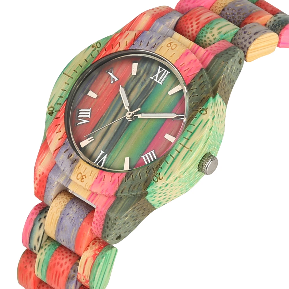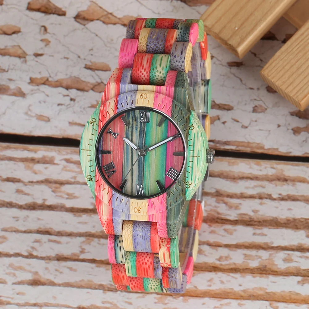 Women Quartz Bamboo Watches Wooden Watch Couple Watches Natural Multi-Colored Bracelet Lovers New Concept Wood Wristwatch