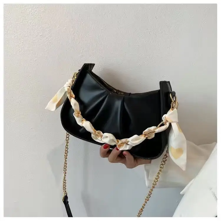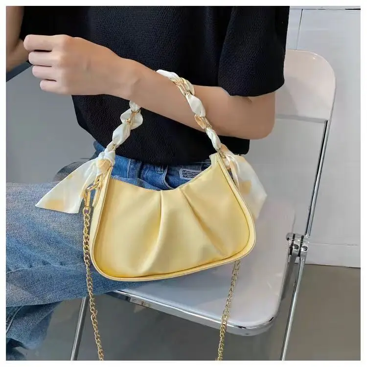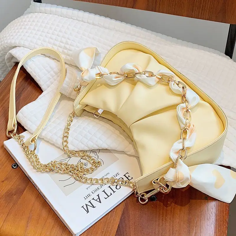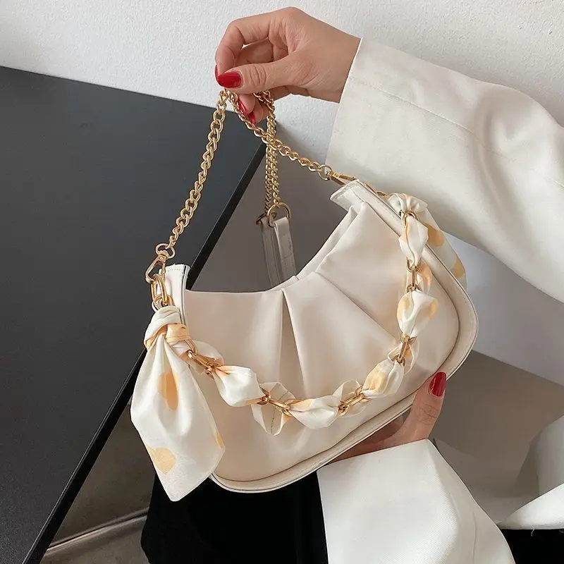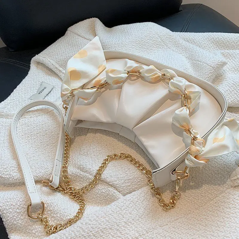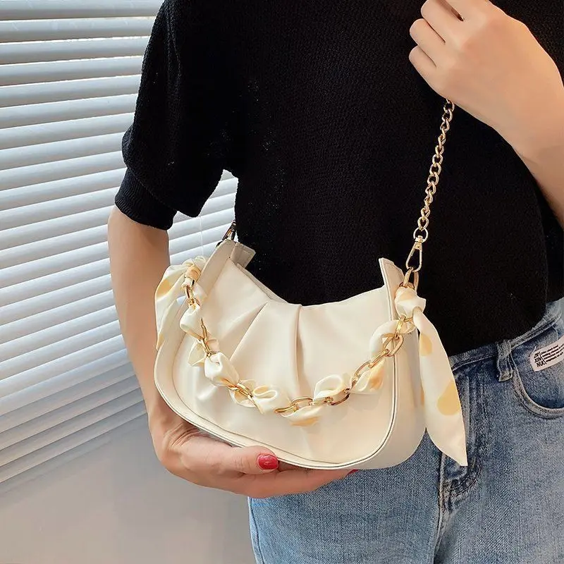 Women's High-End Summer Cross Bags Super Popular Luxury Pleated Cloud Polyester Leather White Chain Zipper New Trendy Design