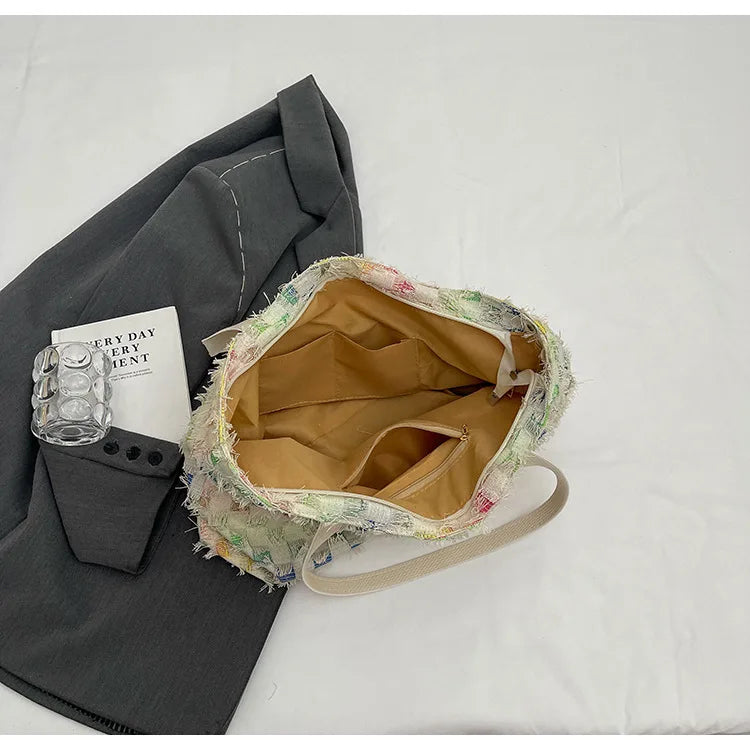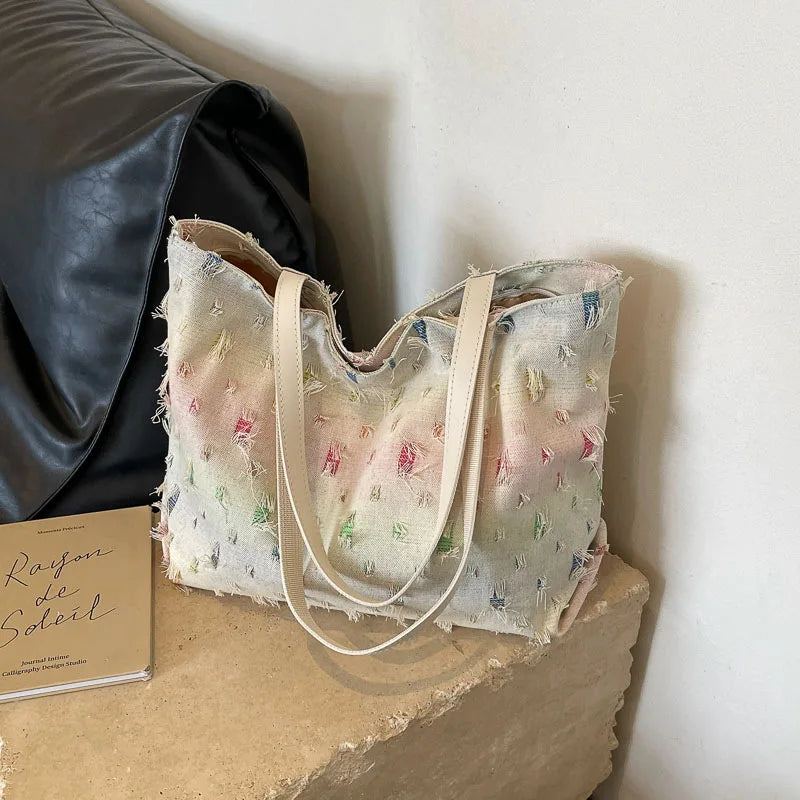 Women's Large Capacity Simple Beautiful Rainbow Geometric Design Crossbody Shopping Shoulder Bag Zip Closure Fashion Style