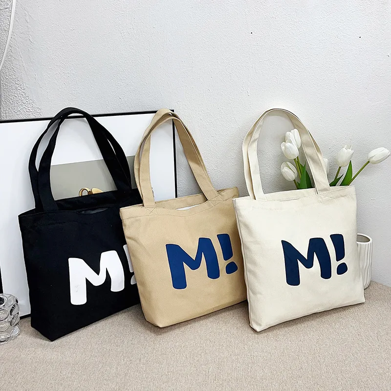 Women's New Style Large Capacity Canvas Tote Bag with Zipper Closure Durable Supermarket Shopping Shoulder Handbag