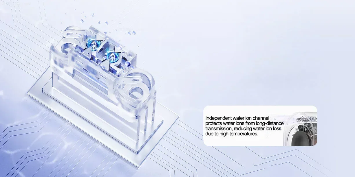 This breakthrough double-needle water ion hair care technology effectively condenses moisture from the air, instantly transforming it into nanoscale water ions. These ions are then delivered directly to the hair through an independent cold air channel, providing deep nourishment to your hair. Independent water ion channel protects water ions from long-distance transmission, reducing water ion loss due to high temperatures.