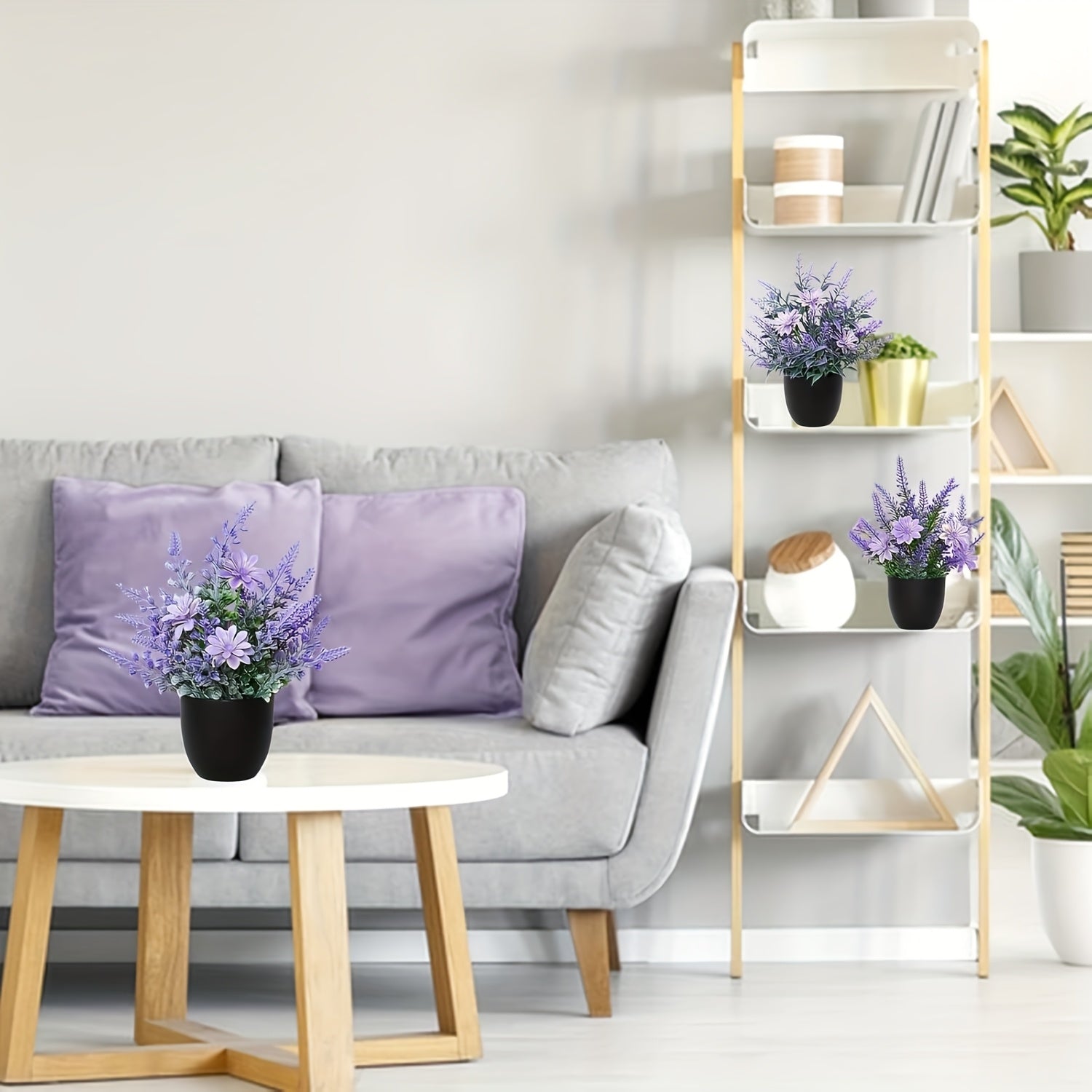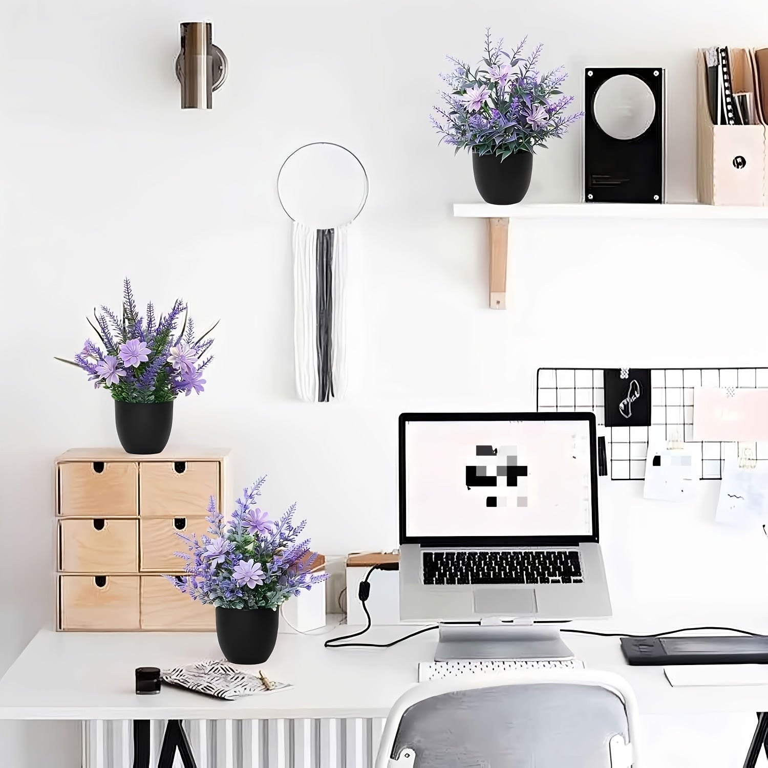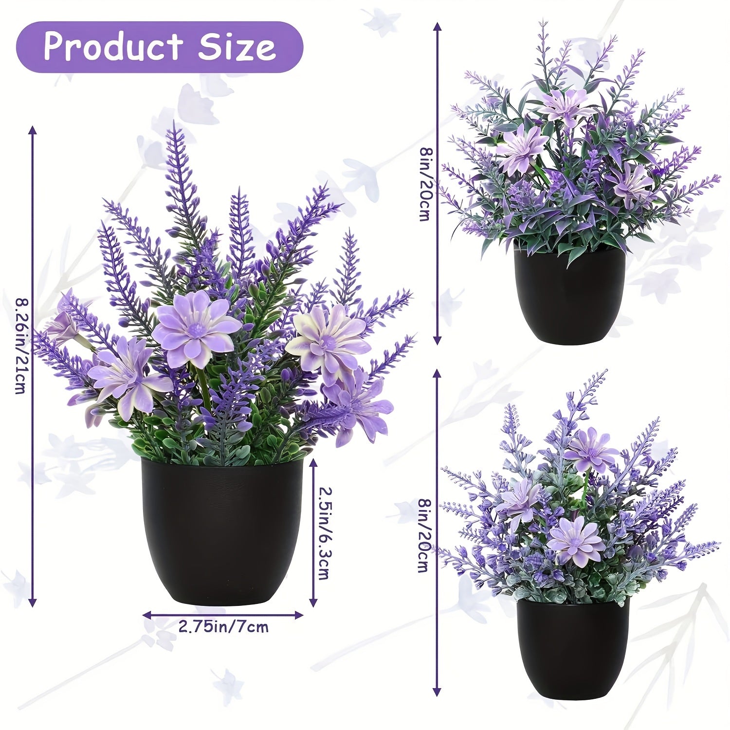 ZEKONAN Mini Artificial Potted Plants - 3-Bulbasque Lavender & Pink Flowers, Green Faux Plastic Indoor Decor for Office, Bedroom, Living Room, Bathroom, Desk, Indoor Plant Decor|Decorative Greenery|Lush Green Foliage